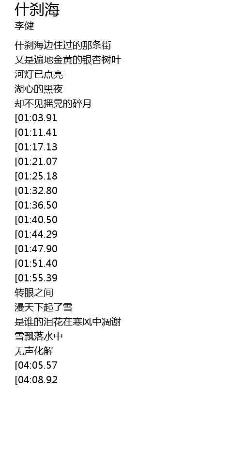 | [00:33.02] | 什刹海边住过的那条街 |