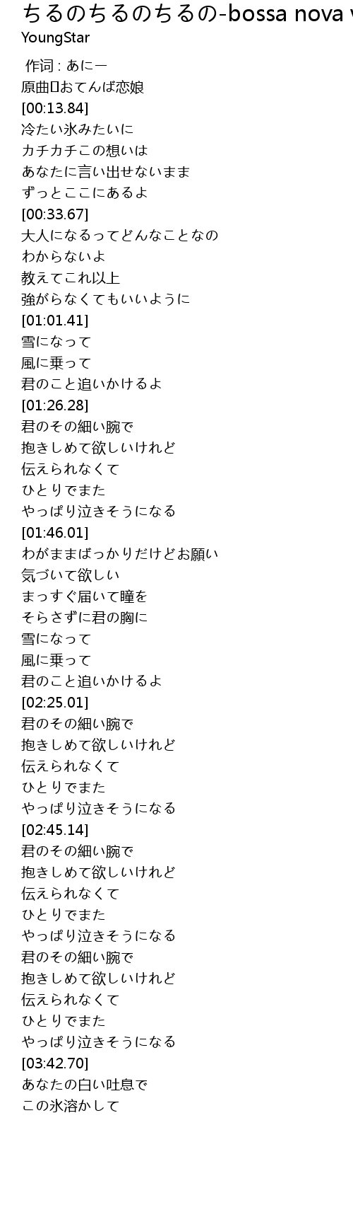 | [00:11.68] | 原曲 おてんば恋娘 |