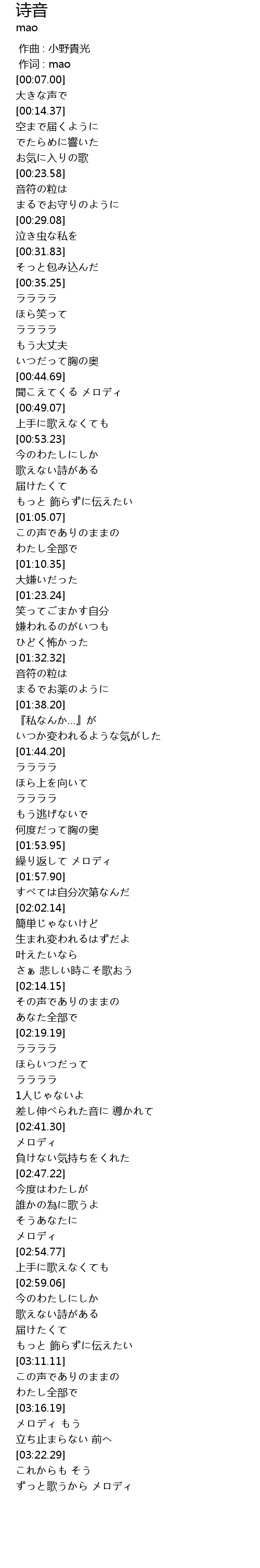 | [02:08.98] | さぁ 悲しい時こそ歌おう |