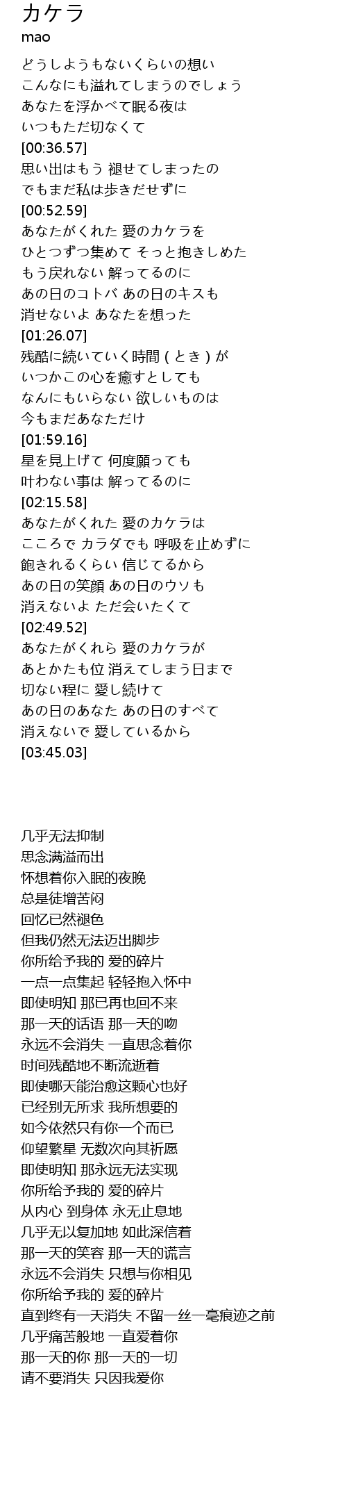 | [02:39.99] | 消えないよ ただ会いたくて |