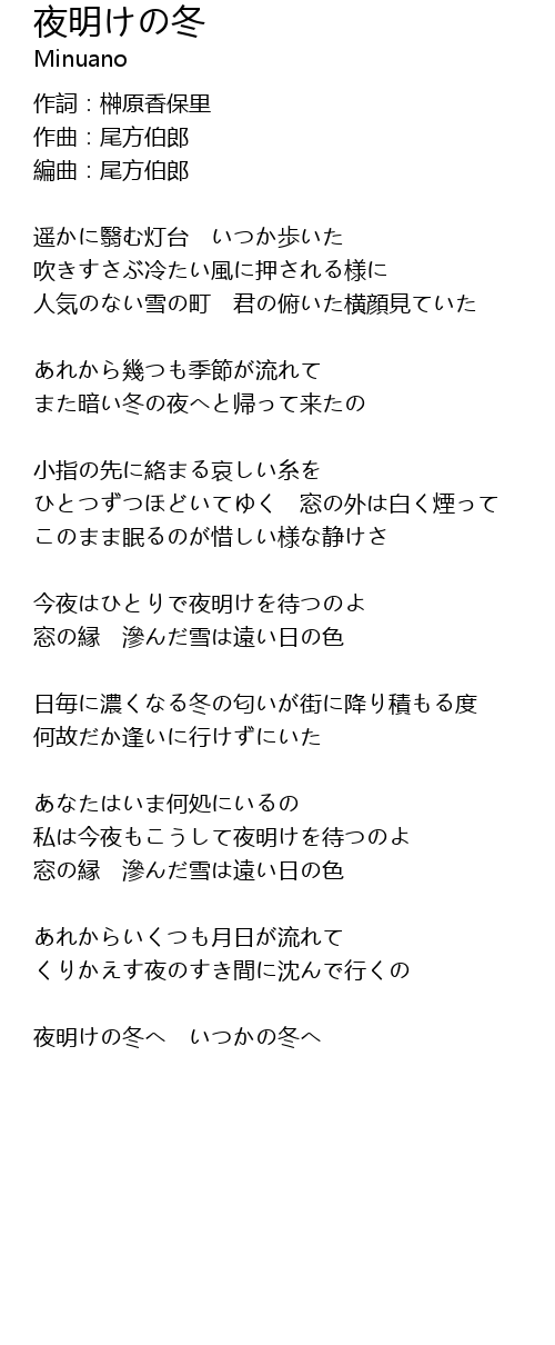 | 夜明けの冬へ いつかの冬へ |