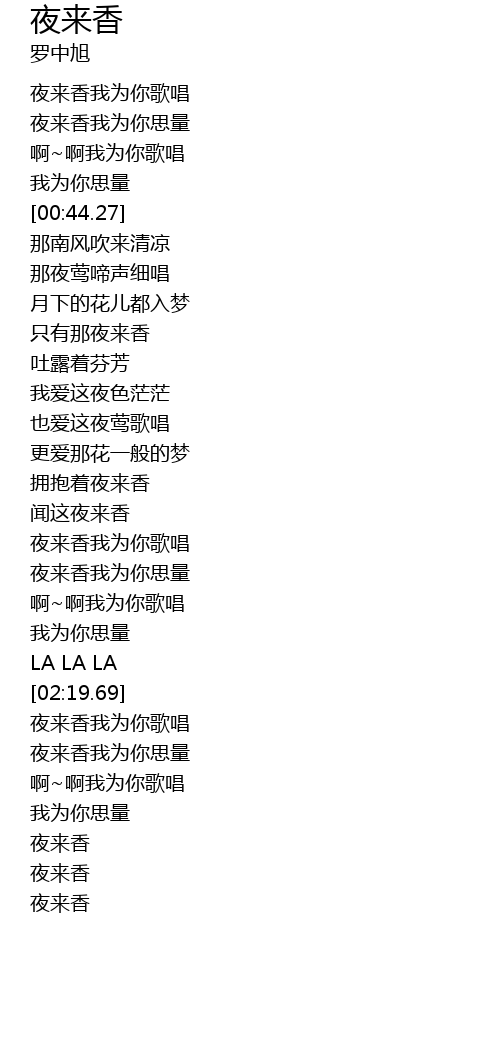 | [01:38.88] | 夜来香我为你歌唱 |