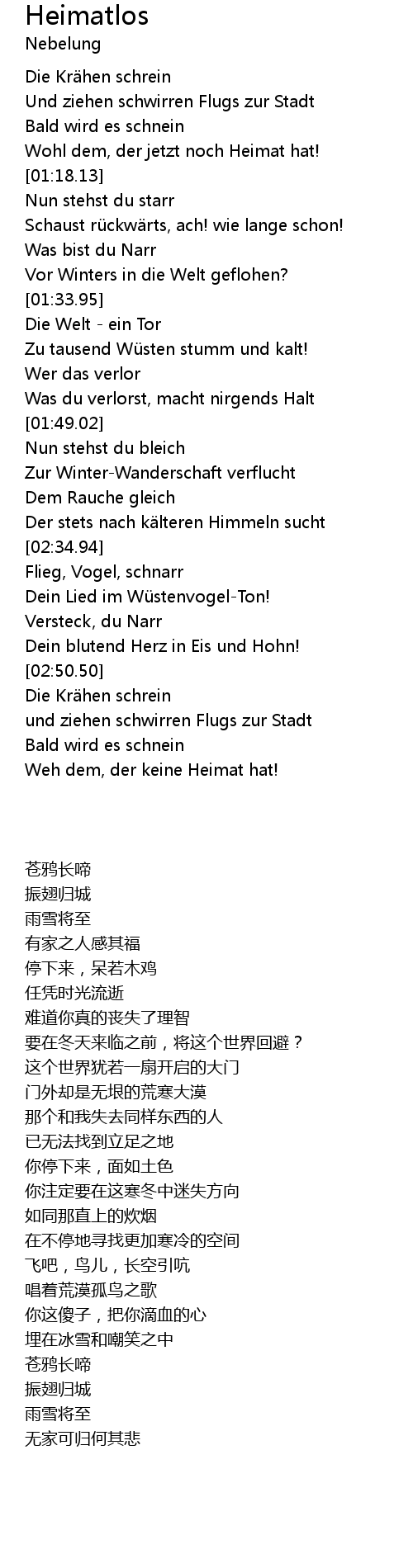| [01:14.27] | Wohl dem, der jetzt noch Heimat hat! |