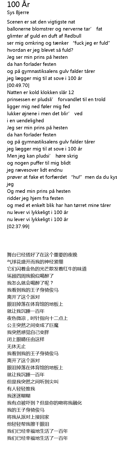 | [02:37.99] | nu lever vi lykkeligt i 100 år |