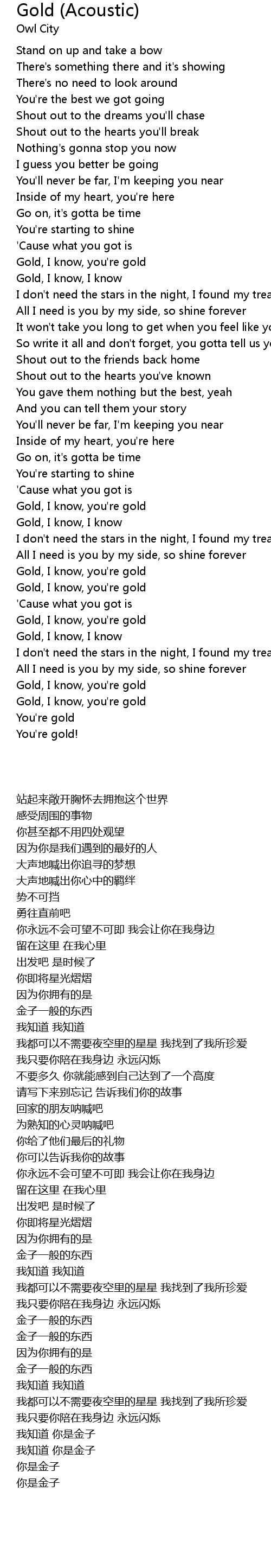 Gold, I know, you're gold |