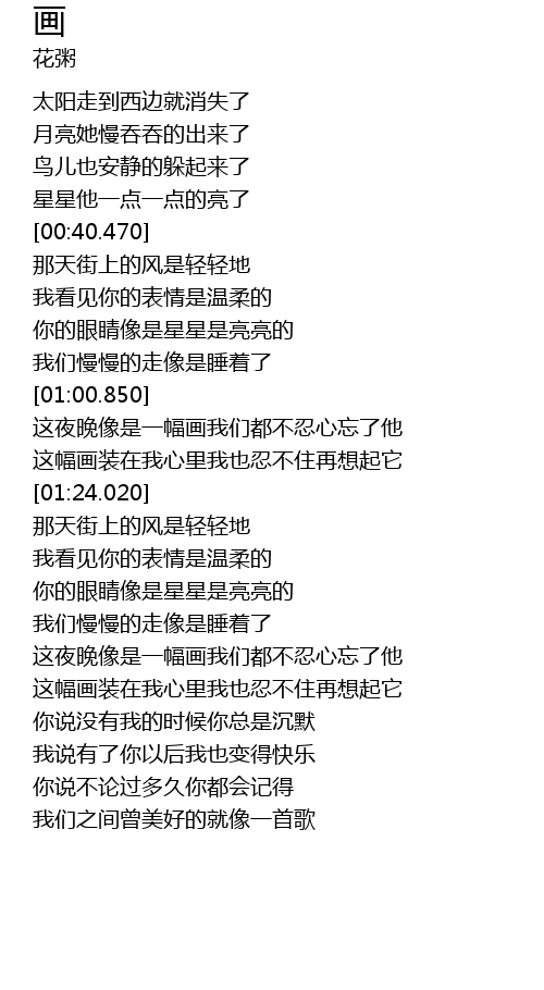| [01:05.040] | 这夜晚像是一幅画我们都不忍心忘了他 |