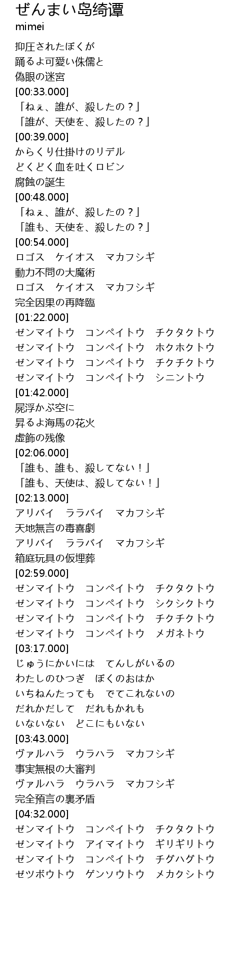 | [00:48.125] | 「ねぇ、誰が、殺したの?」 |