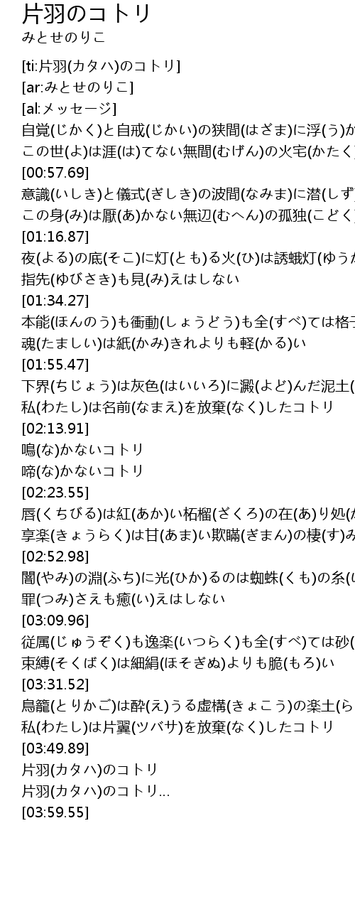 | [03:56.11] | 片羽(カタハ)のコトリ… |