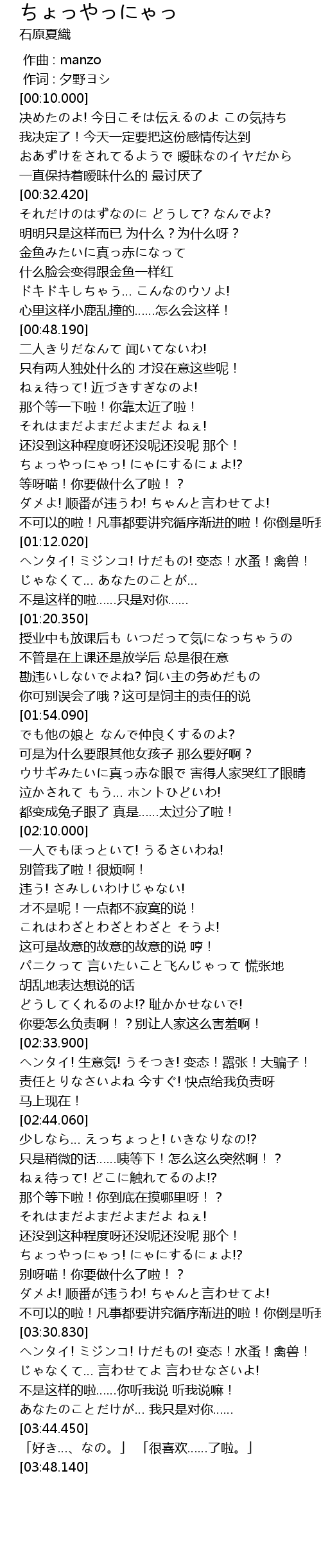 | [03:20.530] | ちょっやっにゃっ! にゃにするにょよ!? 别呀喵!你要做什么了啦!? |