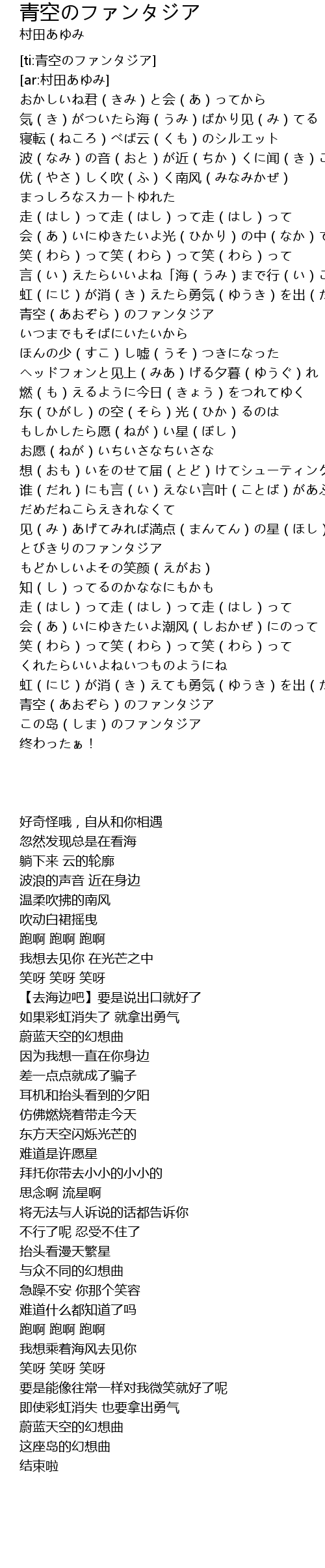 | [03:26.84] | 青空(あおぞら)のファンタジア |