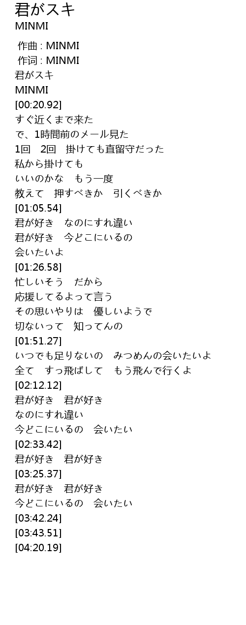 | [01:51.65] | いつでも足りないの みつめんの会いたいよ |