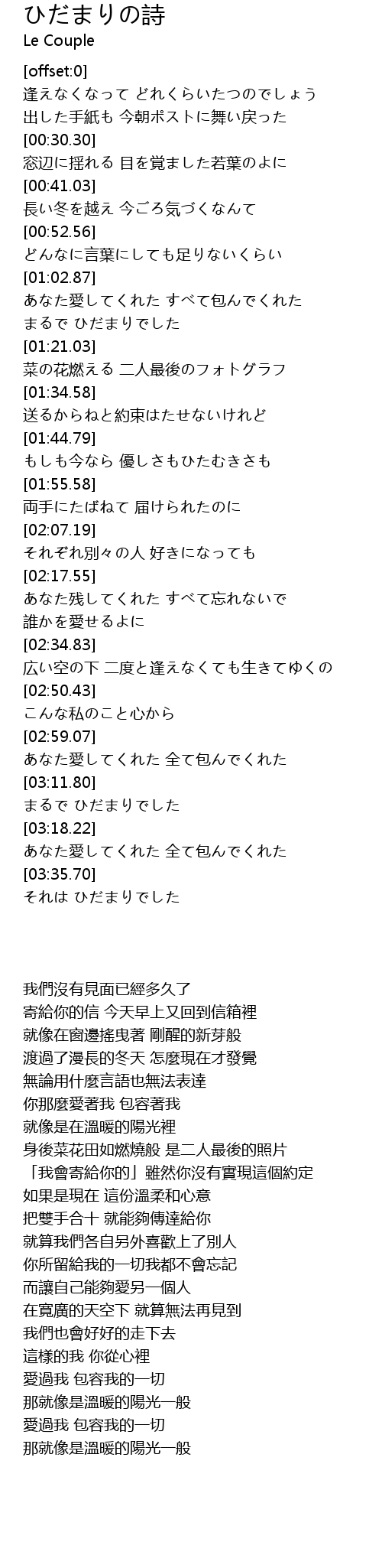 | [03:36.51] | それは ひだまりでした |
