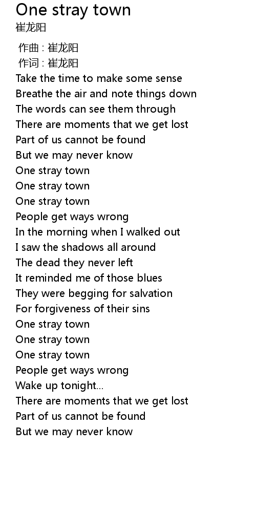| [01:12.22] | One stray town |