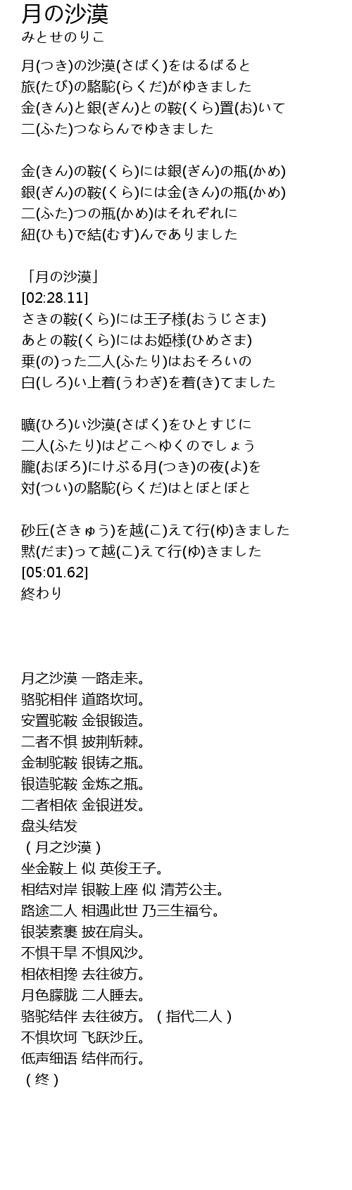 曠(ひろ)い沙漠(さばく)をひとすじに |