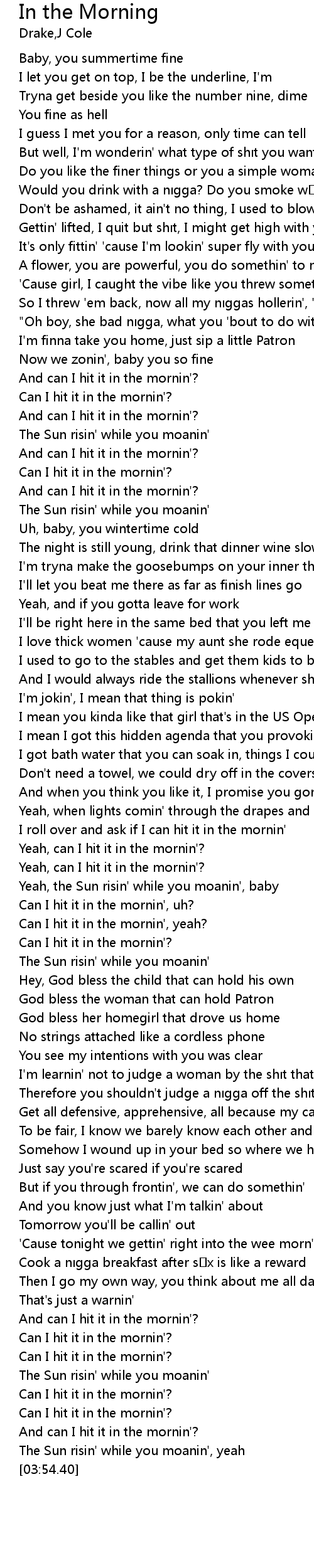| [03:43.61] | Can I hit it in the mornin'? |