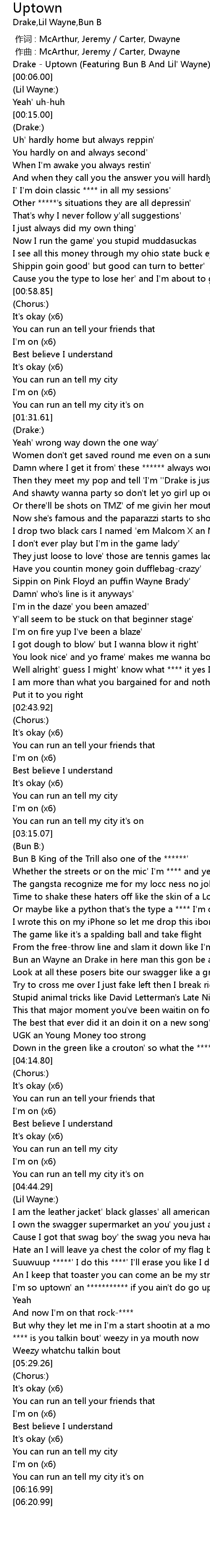 [00:00.52] Drake - Uptown (Featuring Bun B And Lil' Wayne)
