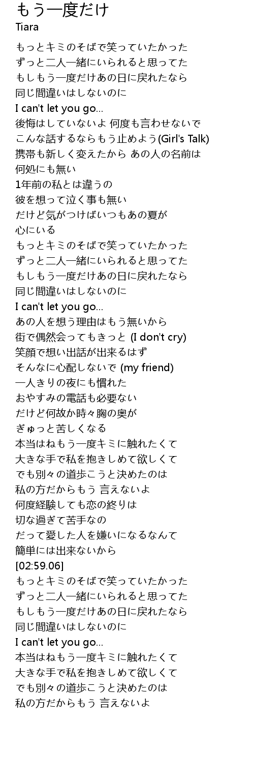 | [01:47.29] | そんなに心配しないで (my friend) |