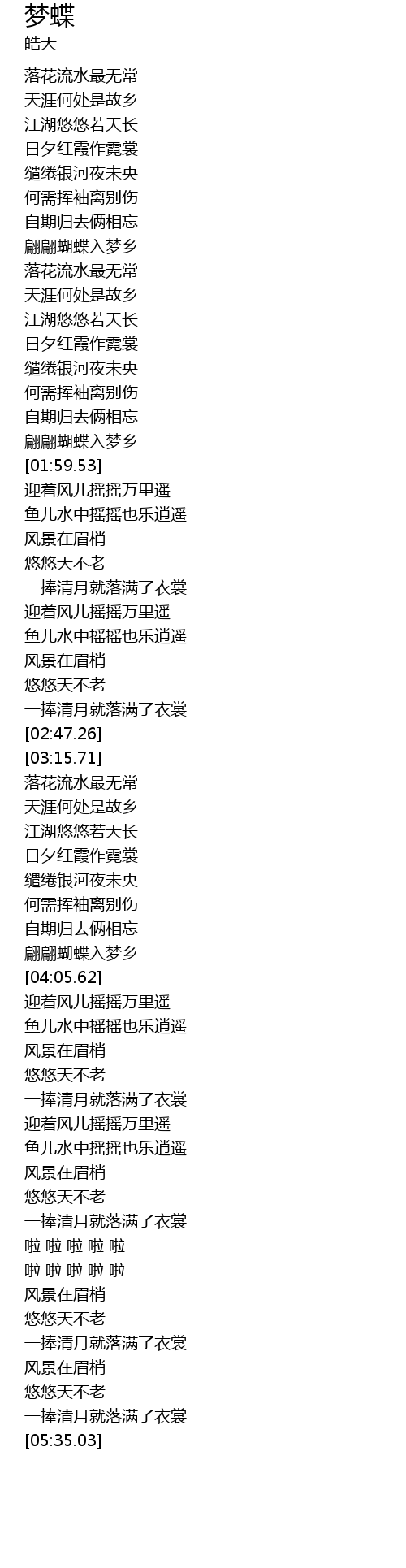 | [01:53.44] | 翩翩蝴蝶入梦乡 |