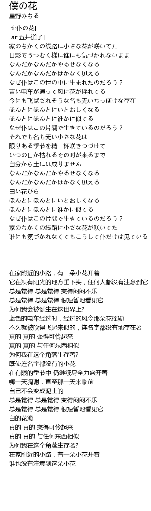 | [00:15.984] | 家のちかくの线路に小さな花が咲いてた |