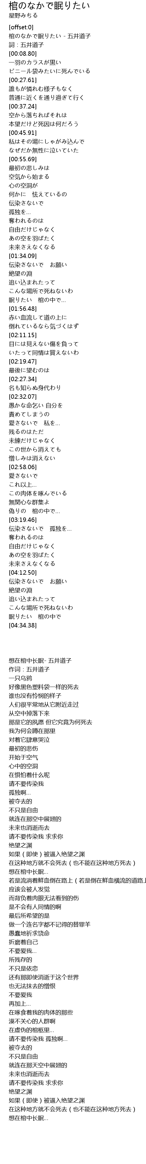 | [04:27.56] | 眠りたい 棺の中で |