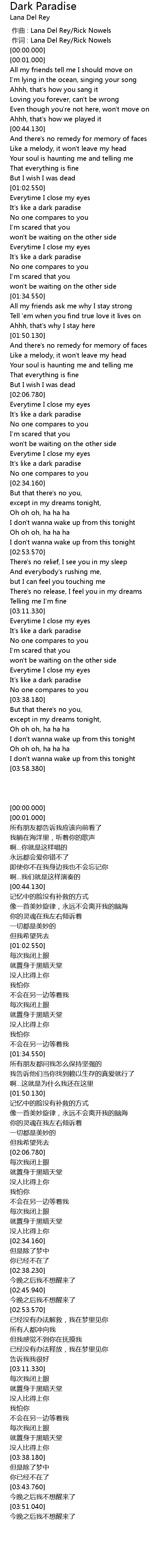 | [00:00.00] | 作词 : Lana Del Rey/Rick Nowels |