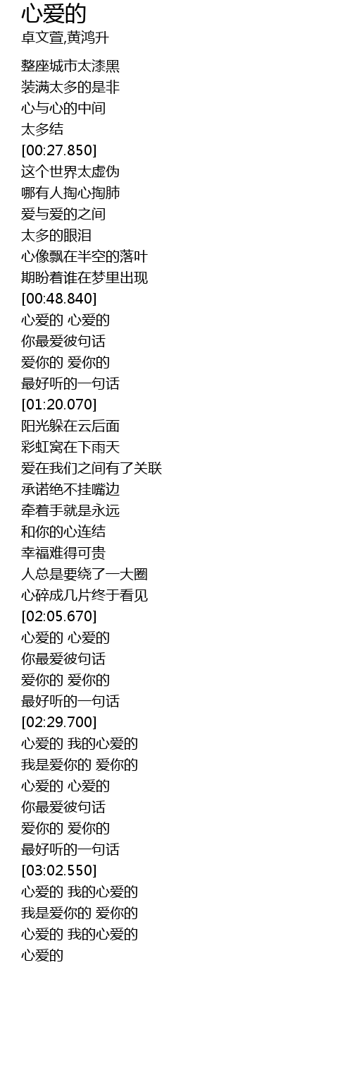 | [02:05.920] | 心爱的 心爱的 |