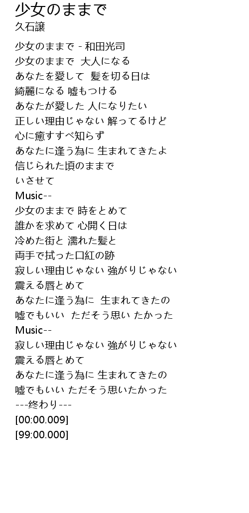 | [00:09.14] | shào nǚ hé tián guāng sī |