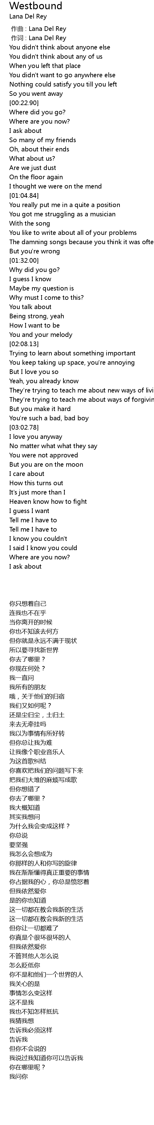 | [00:00.00] | 作曲 : Lana Del Rey |