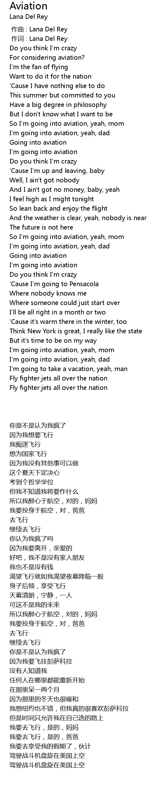 | [00:38.58] | So I' m going into aviation, yeah, mom |