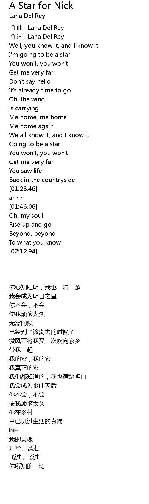 | [00:00.00] | 作曲 : Lana Del Rey |