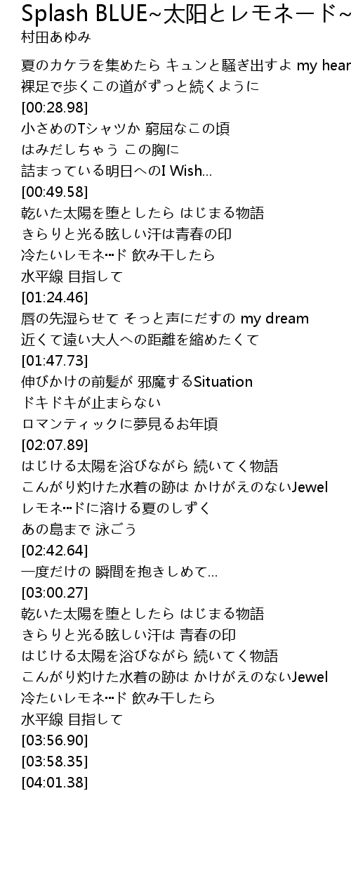 | [02:27.43] | レモネ┅ドに溶ける夏のしずく |