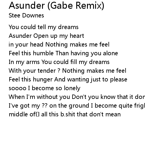 | When I' m without you Don' t you know that it don' t mean I don' t stay alone And I' ve got my ?? on the ground I become quite frightened when I' m out there In the middle of all this b. shit that don' t mean |