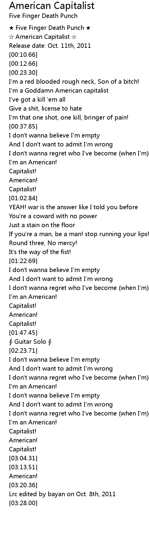 | [00:03.72] | American Capitalist |