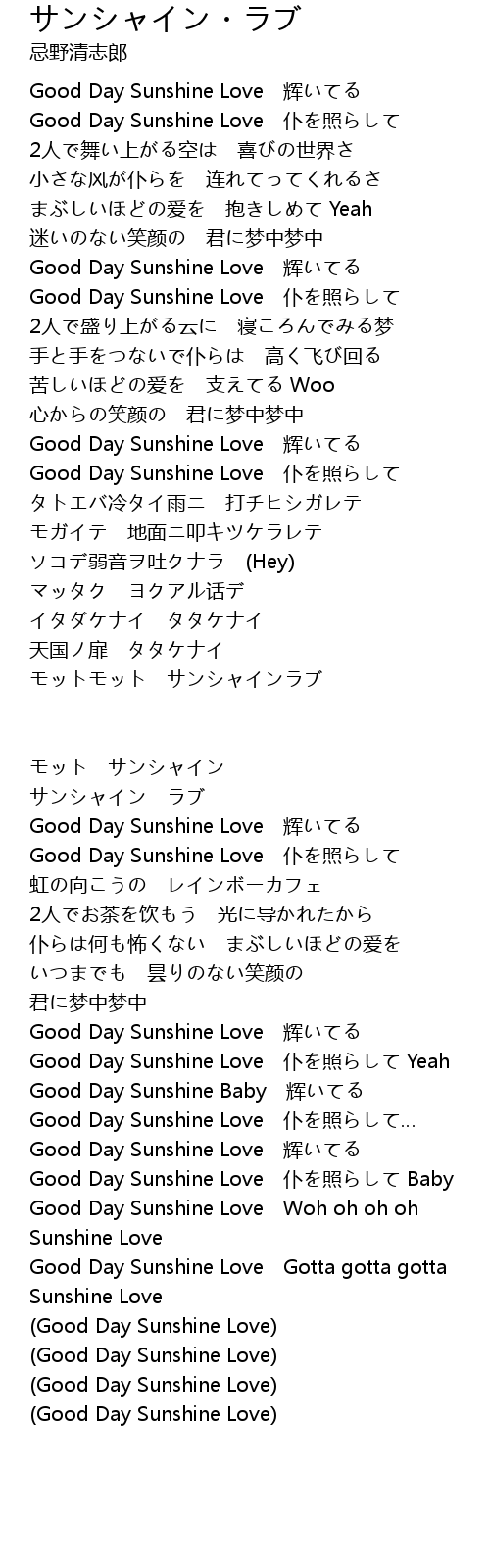 | Good Day Sunshine Love 仆を照らして Yeah | |