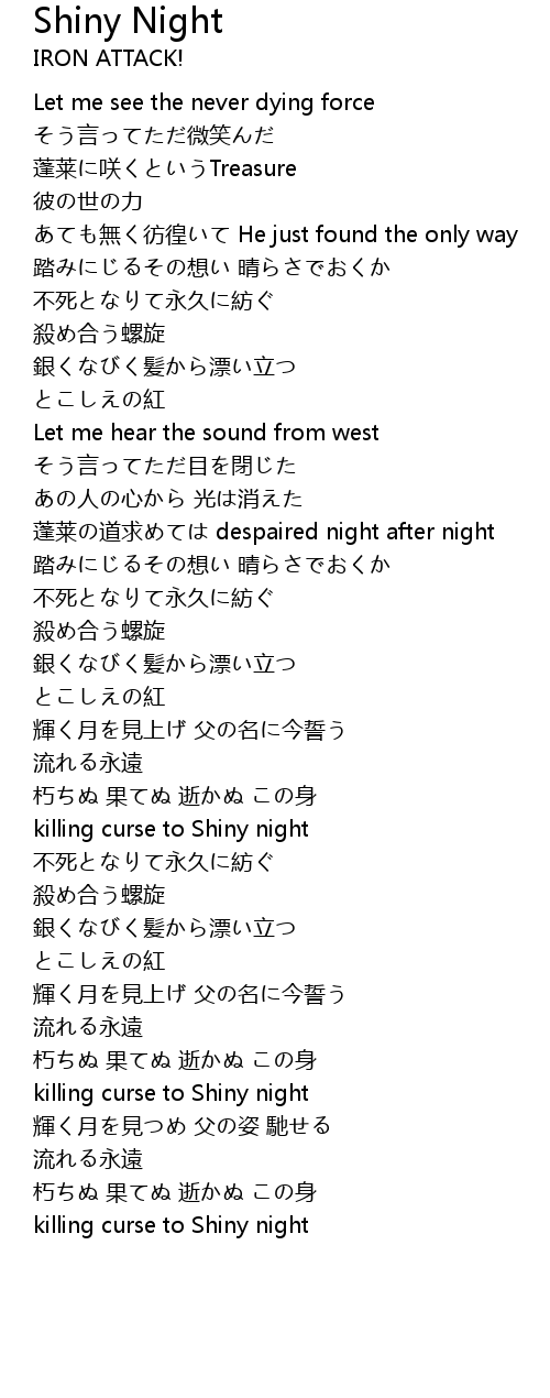 | [03:02.44] | killing curse to Shiny night |