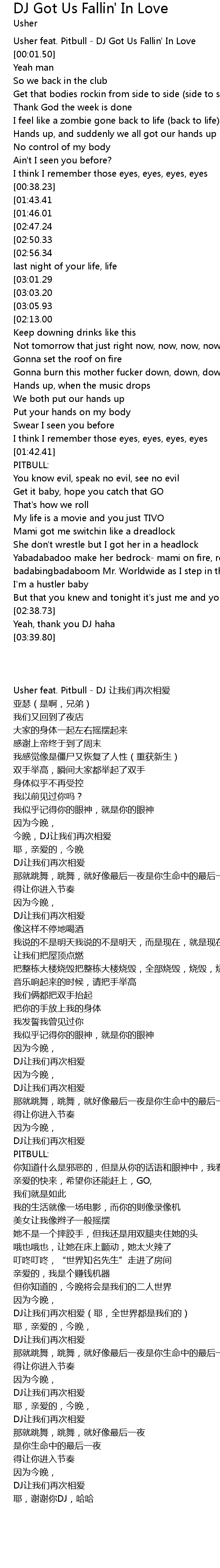 | [00:00.50] | Usher feat. Pitbull DJ Got Us Fallin' In Love |