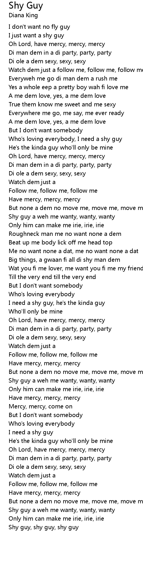 I need a shy guy, he's the kinda guy |