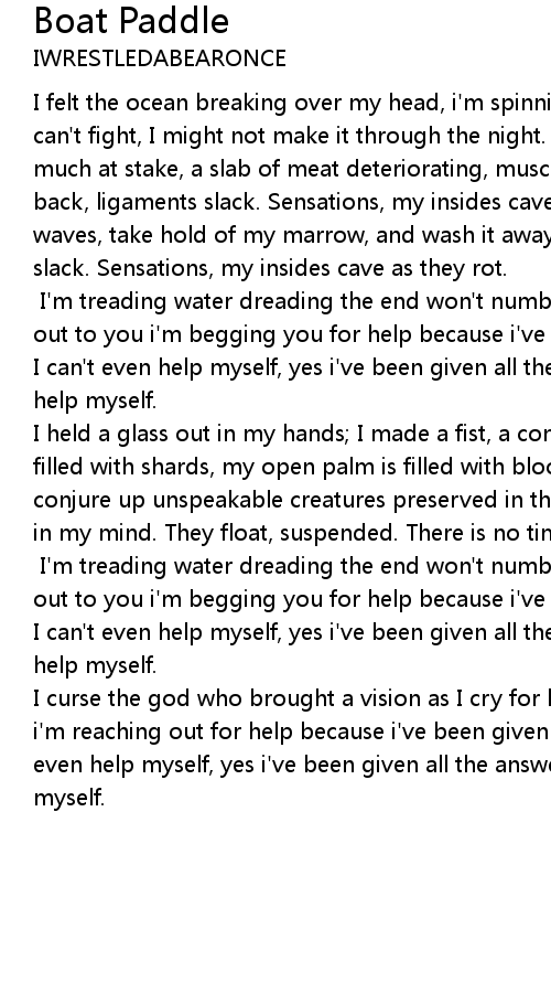 I curse the god who brought a vision as I cry for help: an island passing and i'm reaching out for help because i've been given all the answers and I can't even help myself, yes i've been given all the answers and I can't even help myself. |