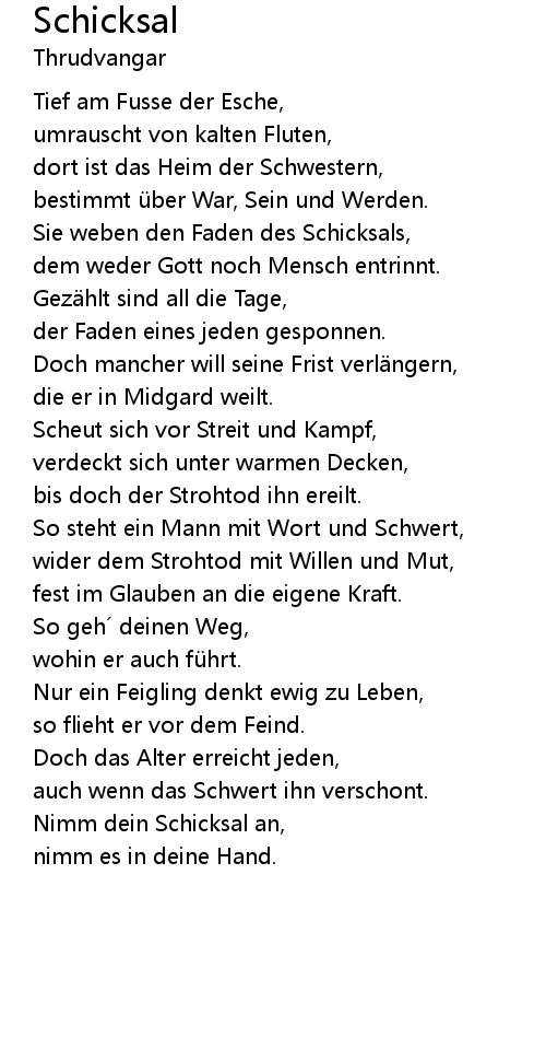 | Song | Schicksal |