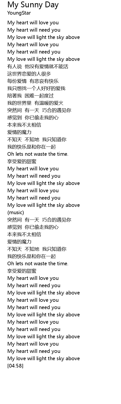 | [01:57] | 我的世界里 有温暖的爱火 |