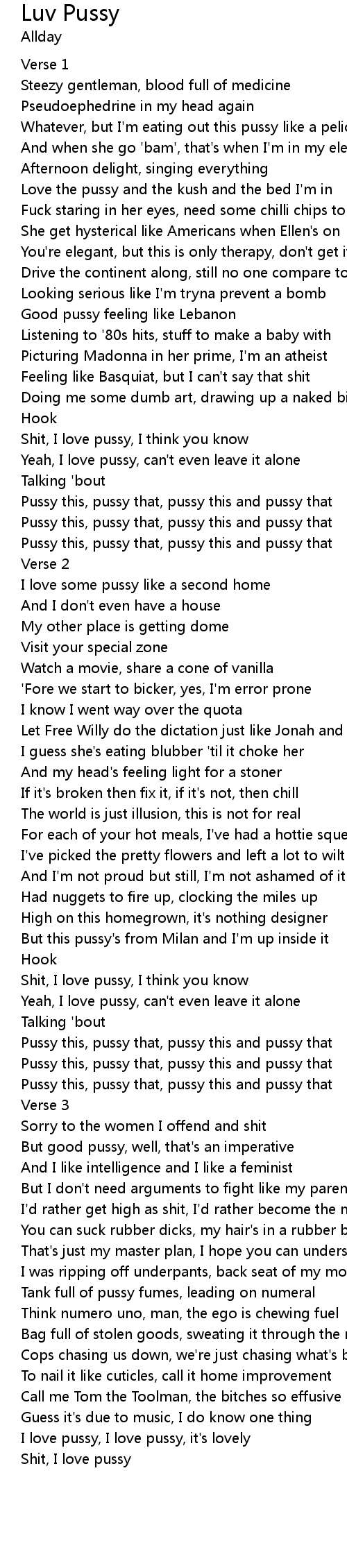 I love pussy, I love pussy, it's lovely |