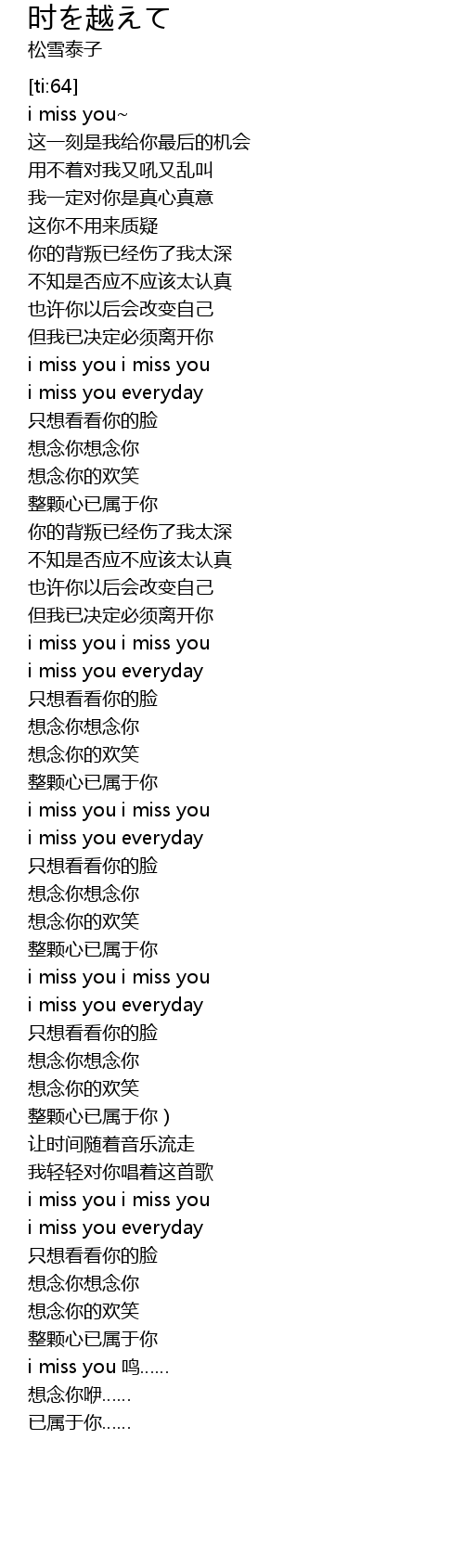 | [01:05.69] | i miss you i miss you |