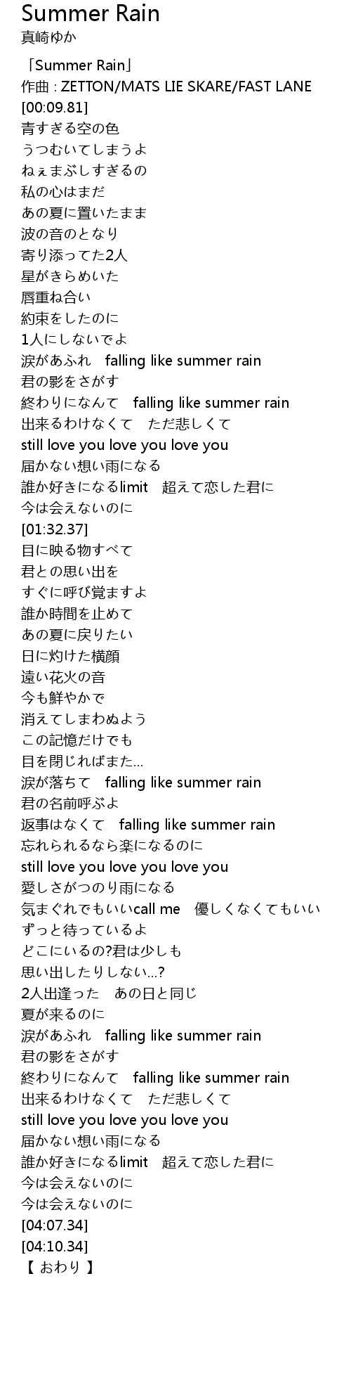| [00:51.45] | 涙があふれ falling like summer rain |