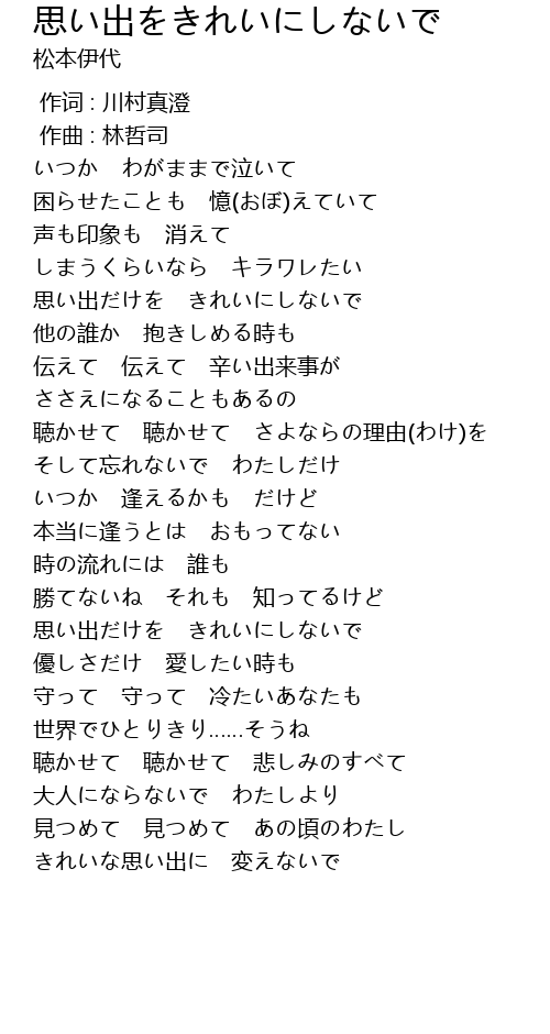 | Song | 思い出をきれいにしないで |