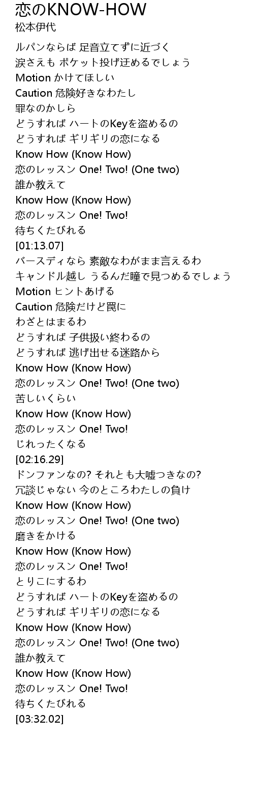 | [03:18.11] | Know How (Know How) |