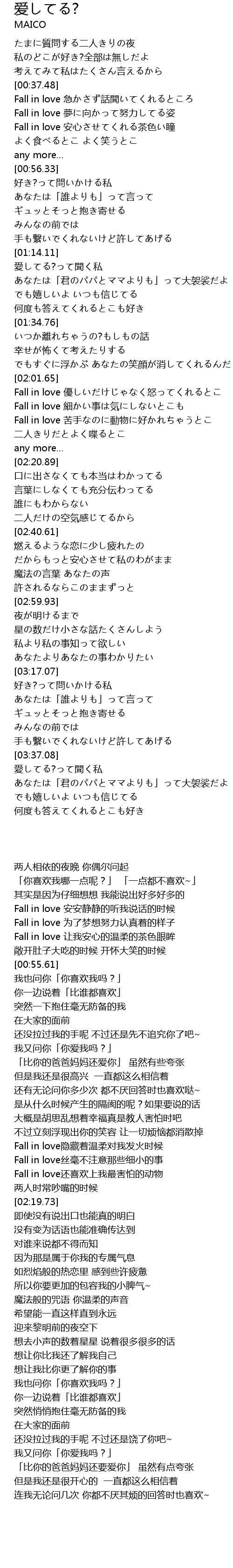 | [00:37.65] | Fall in love 急かさず話聞いてくれるところ |