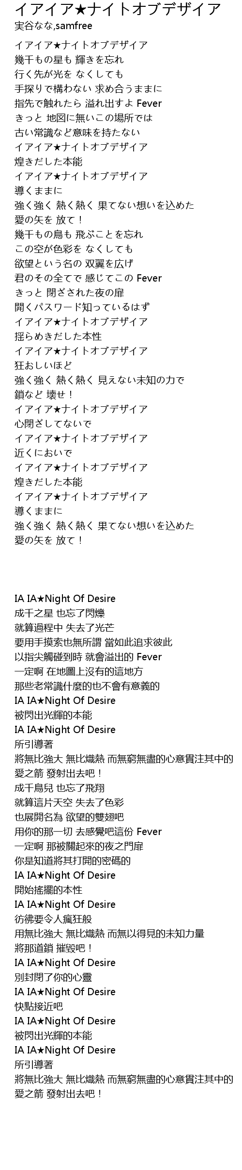 | [01:04.63] | イアイア★ナイトオブデザイア |