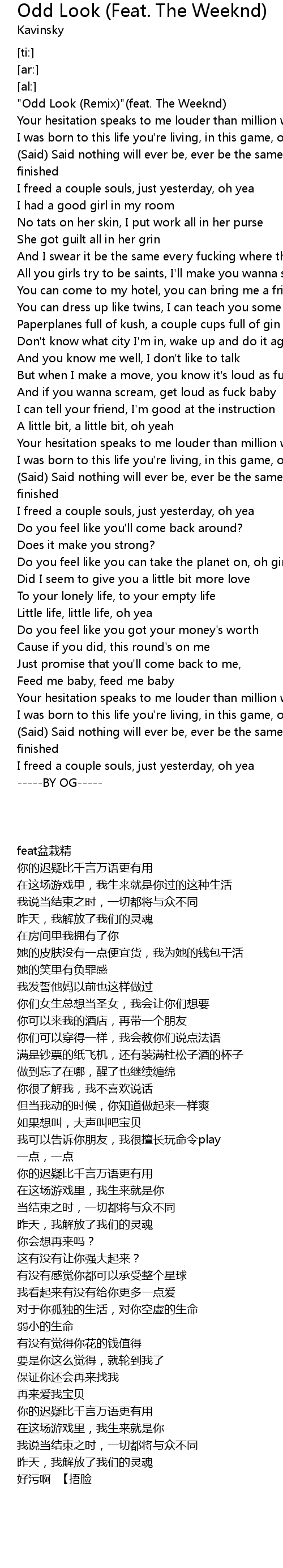 | [00:00.85] | "Odd Look (Remix)"(feat. The Weeknd) |