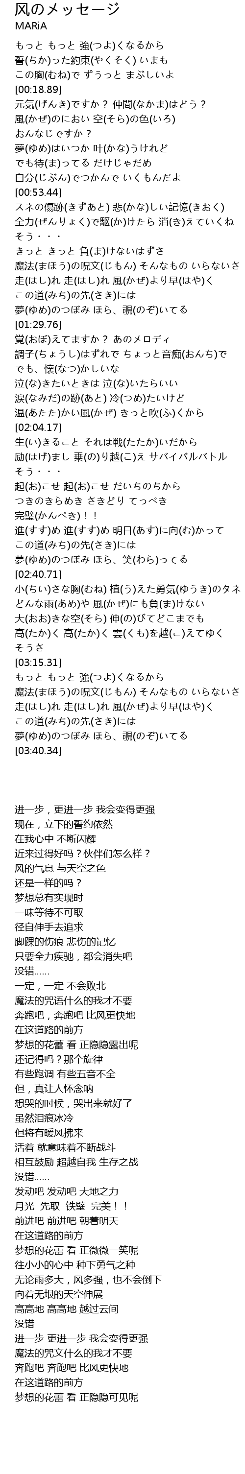| [03:27.26] | 走(はし)れ 走(はし)れ 風(かぜ)より早(はや)く |