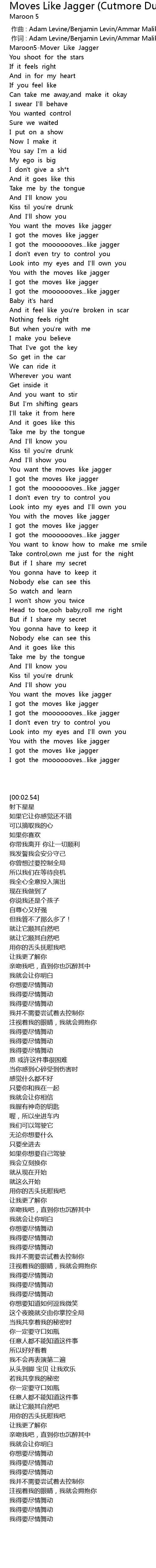| [00:02.54] | Maroon5-Mover Like Jagger |
